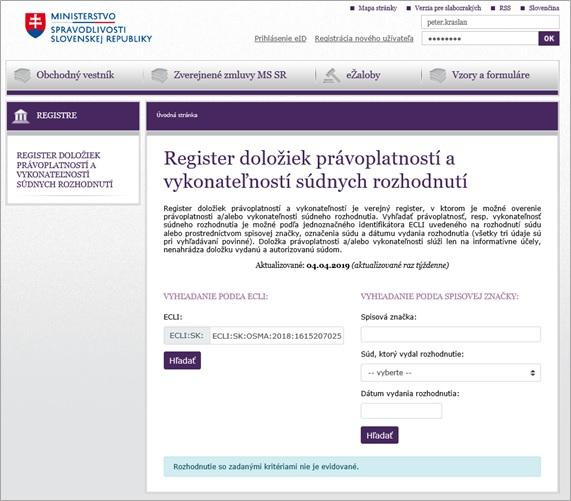 MSSR spustilo na svojom webe register doložiek právoplatností a vykonateľností súdnych rozhodnutí.